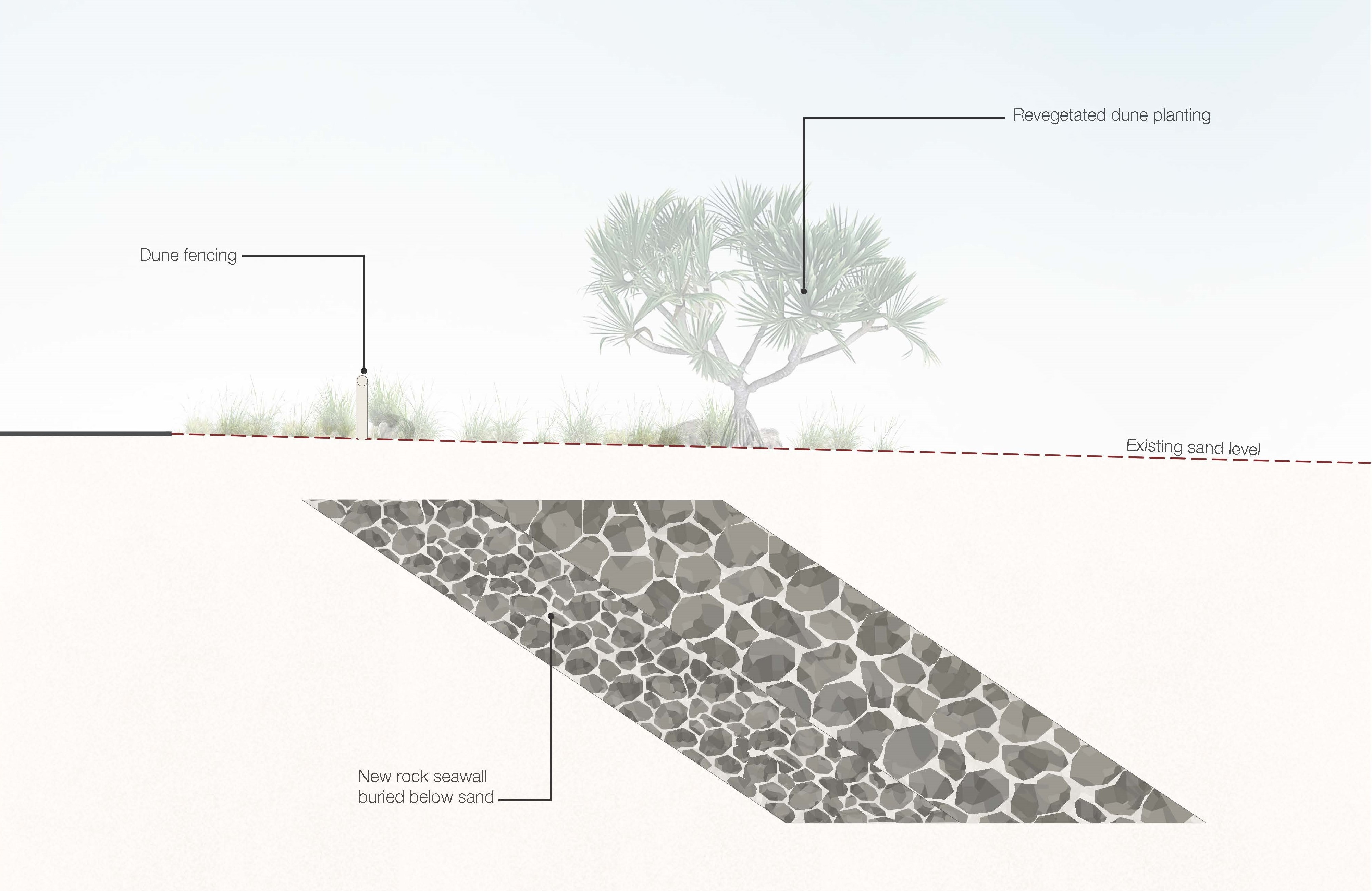 The existing seawall was constructed in the 1980’s, and an upgrade is now critical to ensure the foreshore remains safe, resilient, and vibrant for years to come. Without action, we risk serious damage to the dunes and foreshore that could lead to more extensive beach restoration works, a disruption of access to the foreshore and impacts to natural beauty of the area.