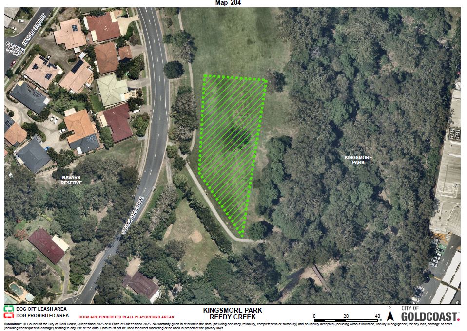 The dog off leash exercise area is limited within the area indicated by the green dotted line on schedule 2, map 284.