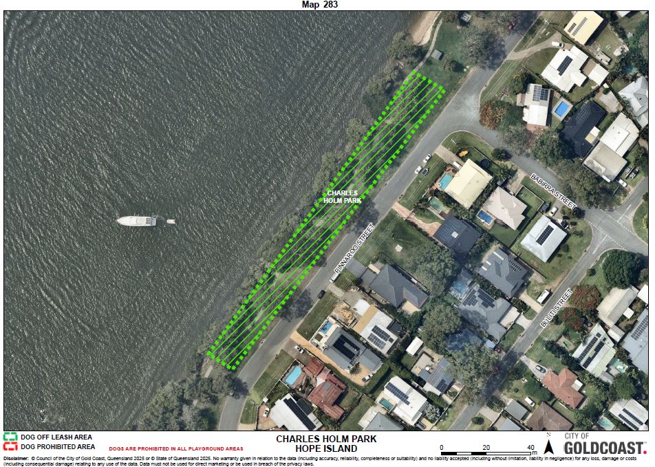 The dog off leash exercise area is limited within the area indicated by the green dotted line on schedule 2, map 283.
