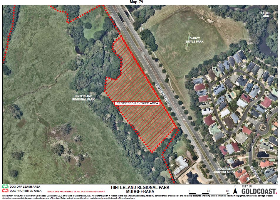 The dog prohibited area is limited within the area indicated by the red dotted line on schedule 2, map 79.